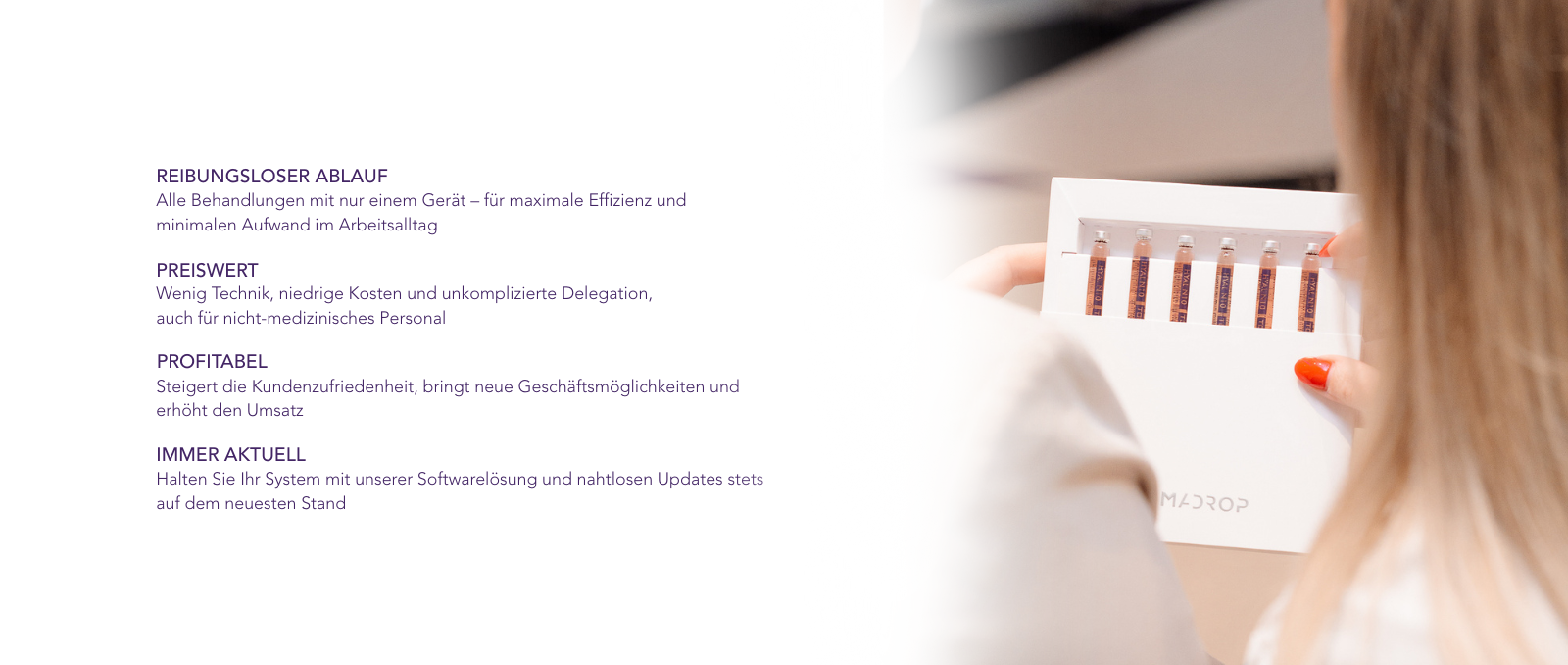 Bei DERMADROP schätzen wir unsere Partnerschaften. Werden Sie unser Partner und bringen Sie Ihr Geschäft mit der innovativen Technologie von DERMADROP auf das nächste Level – für fortschrittliche Hautpflege, die über Anti-Aging hinausgeht. DERMADROP TDA ist das weltweit erste non-invasive System, das Wirkstoffe tief in die Hautschichten eindringt und so die Hautgesundheit und Regeneration nachhaltig fördert. Bieten Sie Ihren KundInnen ein ganzheitliches Hautpflegeerlebnis mit DERMADROP – für sichtbare Ergebnisse und eine spürbare Verwandlung der Hautgesundheit.